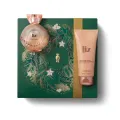 Inspiradas nas histórias l, nossas embalagens são mais do que lembranças, são símbolos de emoção, esperança e despertam memórias afetivas, como as guirlandas natalinas que enfeitam as portas e anunciam tempos de paz. A composição da caixa é 100 % reciclável e traz um material em relevo dourado e brilhante de forma encantadora.