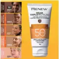 Renew Solar FPS 50 com Ácido Hialurônico vai além de um protetor solar, combinando proteção, tratamento e maquiagem para uma pele impecável.