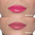 E o melhor, o batom é 3 em 1, ou seja, quando aplicado apenas uma camada seu acabamento é de balm, na segunda camada ele se transforma em efeito batom, mais pigmentado, sabe?