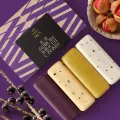 caixa com 4 sabonetes em barra de 100 gramas cada, sendo 1 castanha, 1 maracujá, 1 açaí e 1 andiroba.
