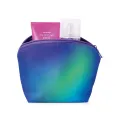 Com zíper para manter os produtos em segurança, suas cores em diferentes tons de azul refletem o calor que sentimos junto à pessoa amada, ou quando recebemos um presente.